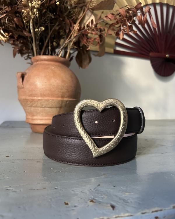 160,00 €Heart Belt - Brown Leather & Metal Golden Buckle -