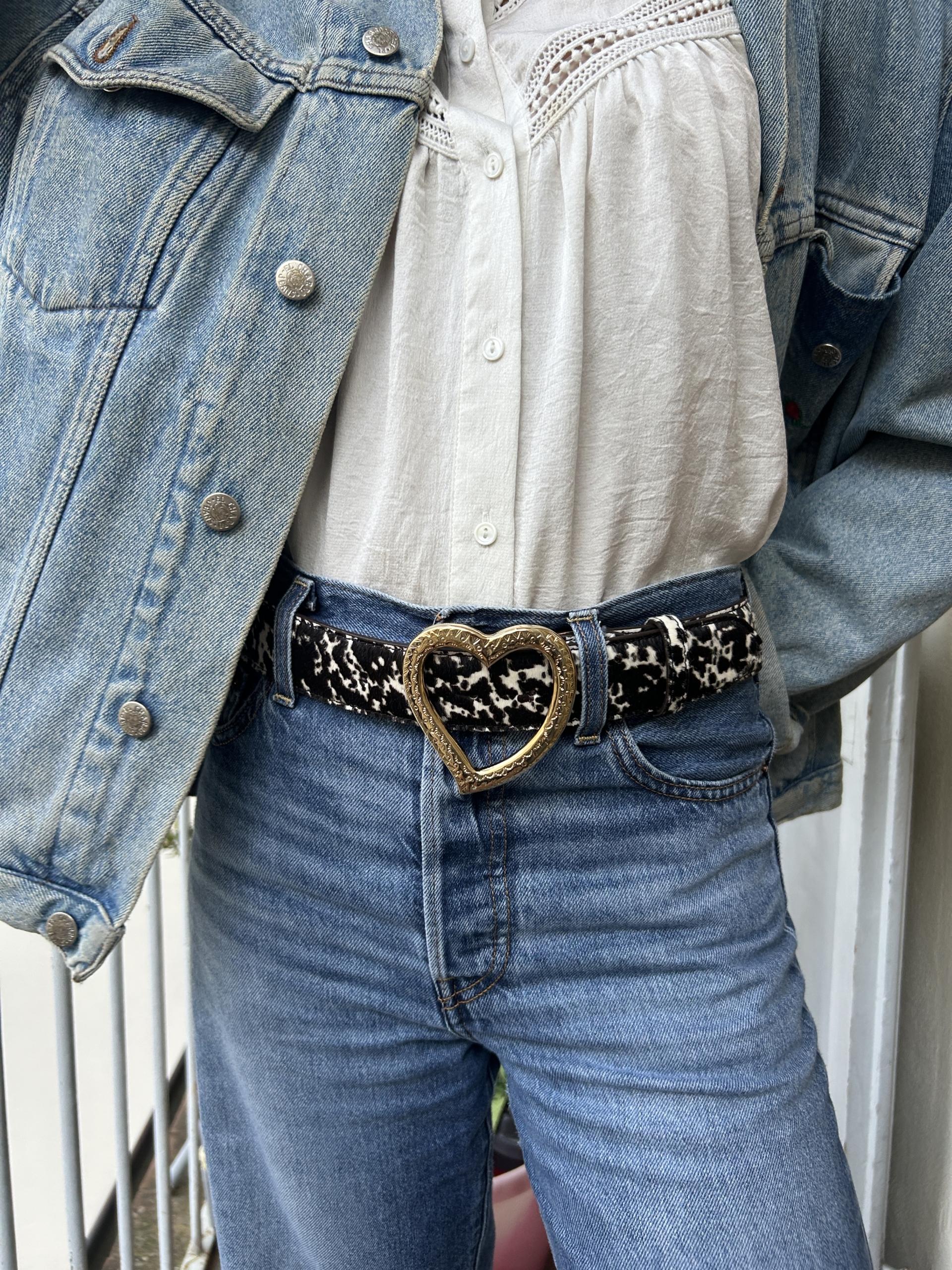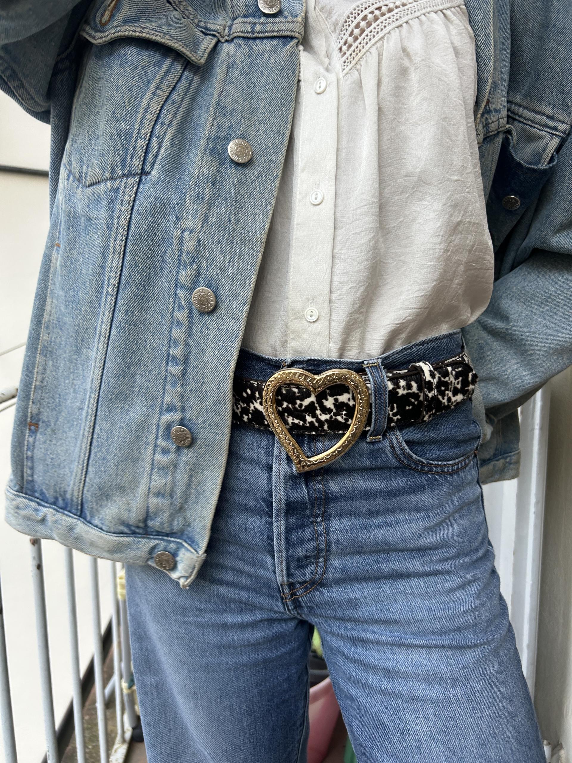 The Heart Belt -Cowhide Leather Pony & Metal Golden Buckle 4